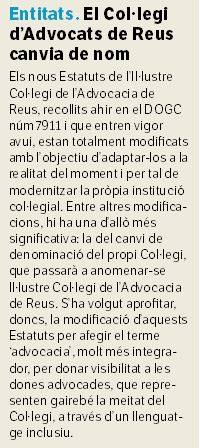 El Col·legi d'Advocats de Reus canvia la seva denominació