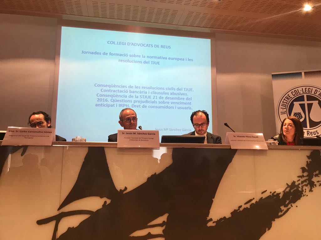 Les jornades de Formació de l’ICAREUS han continuat a la tarda amb una taula rodona sobre les conseqüències de les resolucions civils del TJUE, la contractació bancària i clàusules abusives, també sobre la conseqüència de la STJUE 21 de desembre del 2016, qüestions prejudicials sobre el venciment anticipat i IRPH i punts sobre el Dret de consumidors i usuaris. De fet, aquesta intervenció plural ha anat de la mà dels professionals Jesús M. Sánchez García, Vicente Pérez Daudí, Cristina Vallejo Ros i Carlos Carramolino Gómez.