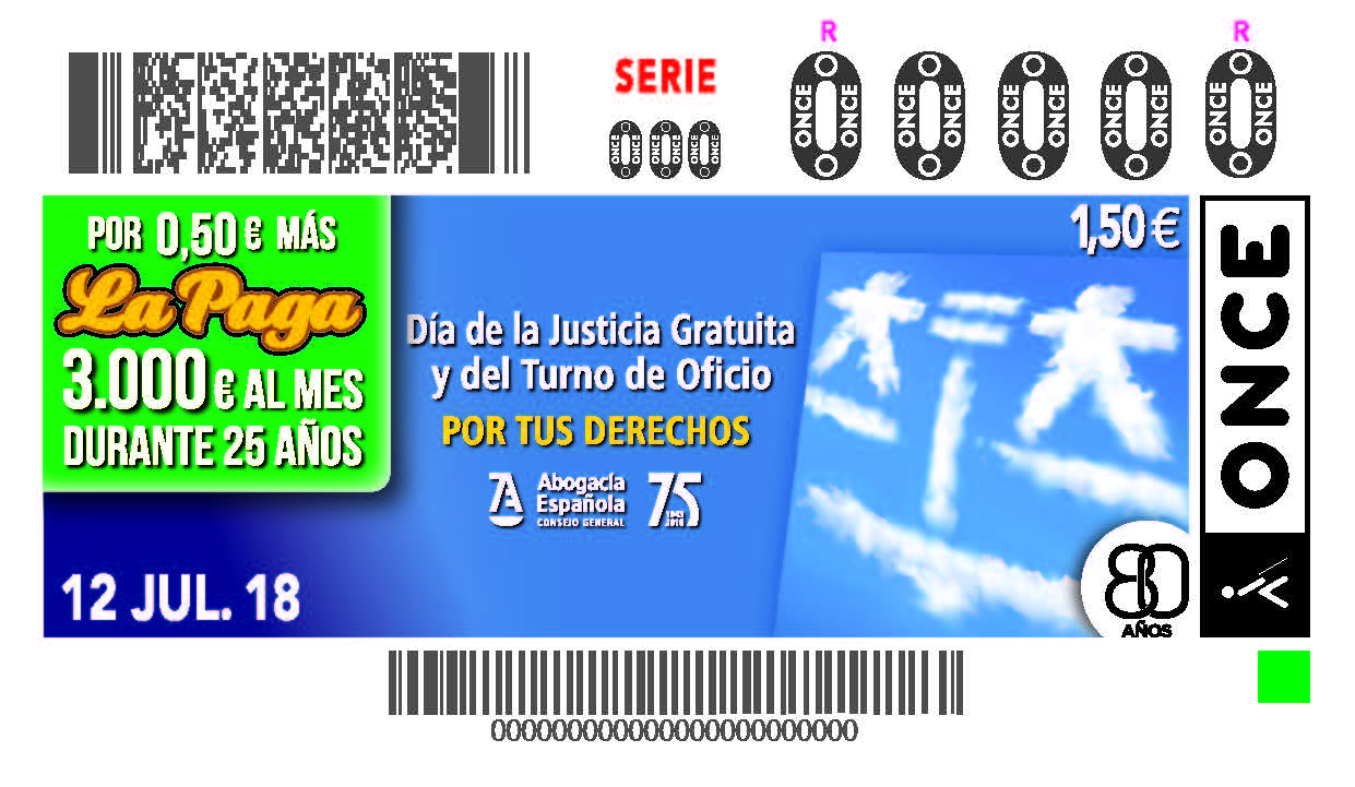 Cupó de l'ONCE dedicat a la justícia gratuïta i torn d'ofici - 12/07/18
