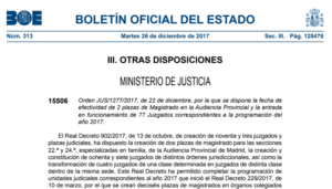 Us informem que en data 26 de desembre de 2017 es va publicar al BOE, l’ordre JUS/1277/2017, de 22 de desembre, per la que disposa la data efectiva de l’entrada en funcionament del Jutjat de 1a Instància núm. 7 de Reus, la qual serà el dia 30 de setembre de 2018. Us adjuntem el BOE per si el voleu consultar.