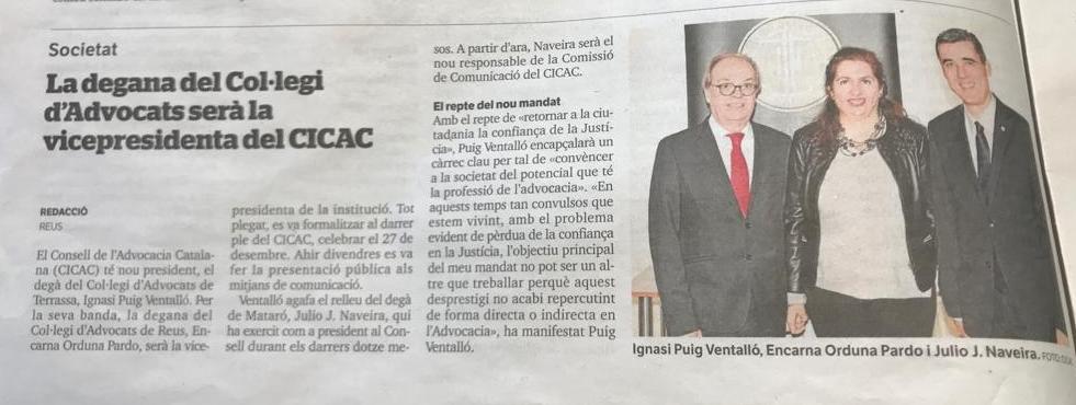 La degana del Col·legi d’Advocats de Reus serà la vicepresidenta del Consell de l’Advocacia Catalana