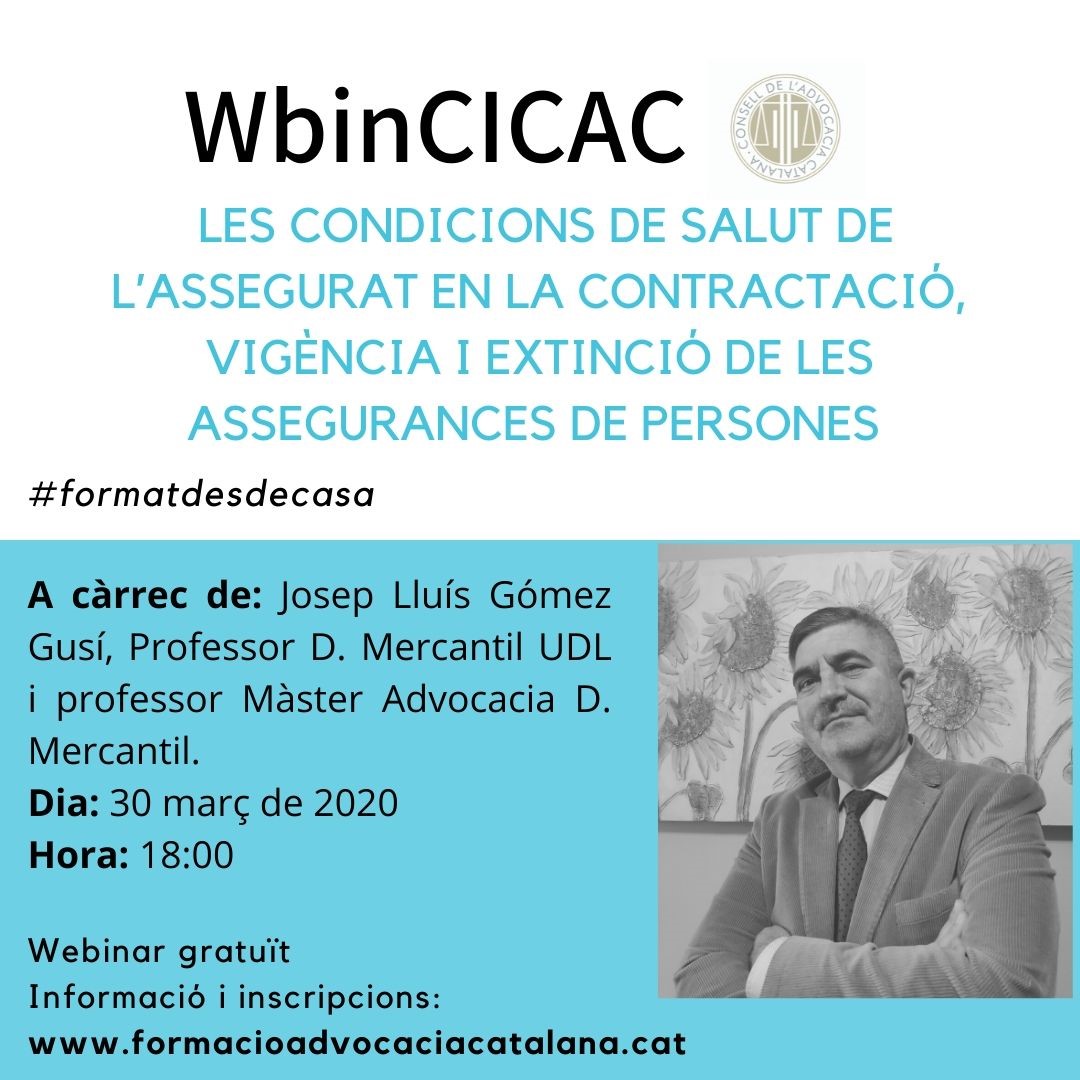 Les condicions de salut de l’assegurat en la contractació, vigència i extinció de les assegurances de persones, a càrrec del Dr. Josep Lluís Gómez