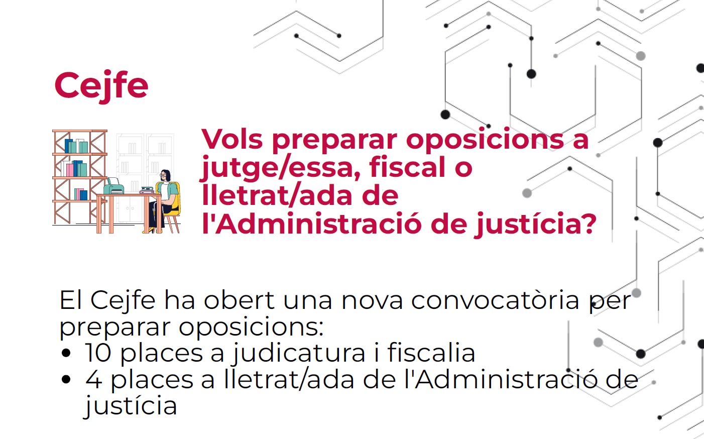 El CEJFE obrirà una nova convocatòria de 10 places per a la preparació d’oposicions a judicatura i fiscalia i de 4 places per a la preparació d’oposicions a lletrat/ada de l’Administració de justícia pel torn lliure.