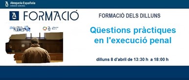 Dins les activitats de formació del Consell General de l’Advocacia Espanyola, en el marc de les “conferències dels dilluns”, ha tingut lloc la conferència “Qüestions pràctiques en l’execució penal” a càrrec de la senyora María Escanciano García-Miranda, abogada i professora associada Dret Penal a la Universitat d'Oviedo.
