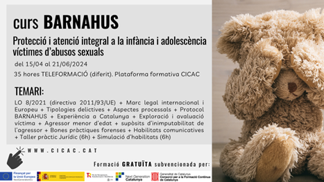 El Consell de l’Advocacia Catalana ha organitzat un nou curs en format TELEFORMACIÓ sobre “BARNAHUS: Protecció i atenció integral a la infància i adolescència víctimes d’abusos sexuals d’una durada de 35 hores.